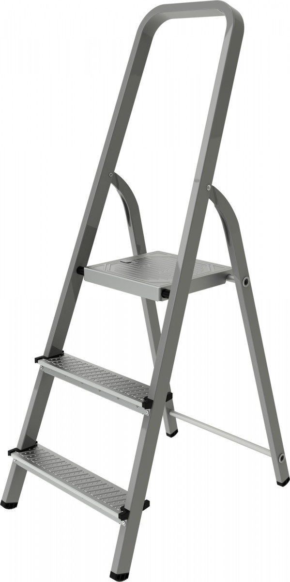 Стальная стремянка за счет прочной и надежной конструкции может применяться как в быту, так и в профессиональной деятельности (например, при проведении строительных работ).