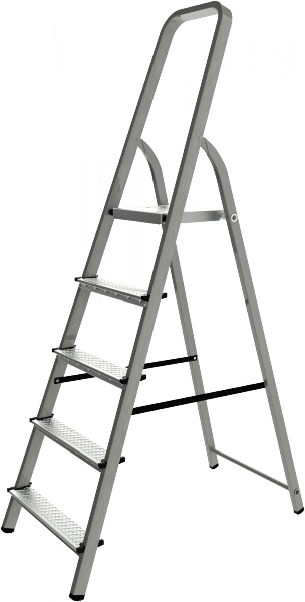 Стальная стремянка за счет прочной и надежной конструкции может применяться как в быту, так и в профессиональной деятельности (например, при проведении строительных работ).