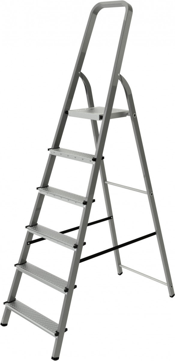 Стальная стремянка за счет прочной и надежной конструкции может применяться как в быту, так и в профессиональной деятельности (например, при проведении строительных работ).