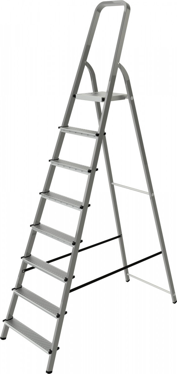 Стальная стремянка за счет прочной и надежной конструкции может применяться как в быту, так и в профессиональной деятельности (например, при проведении строительных работ).