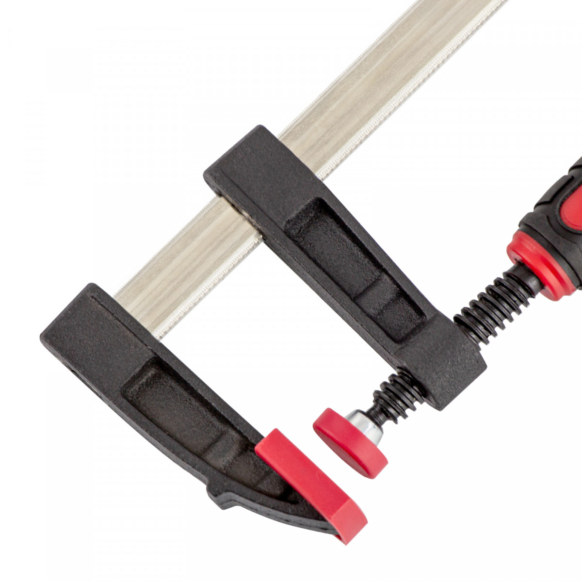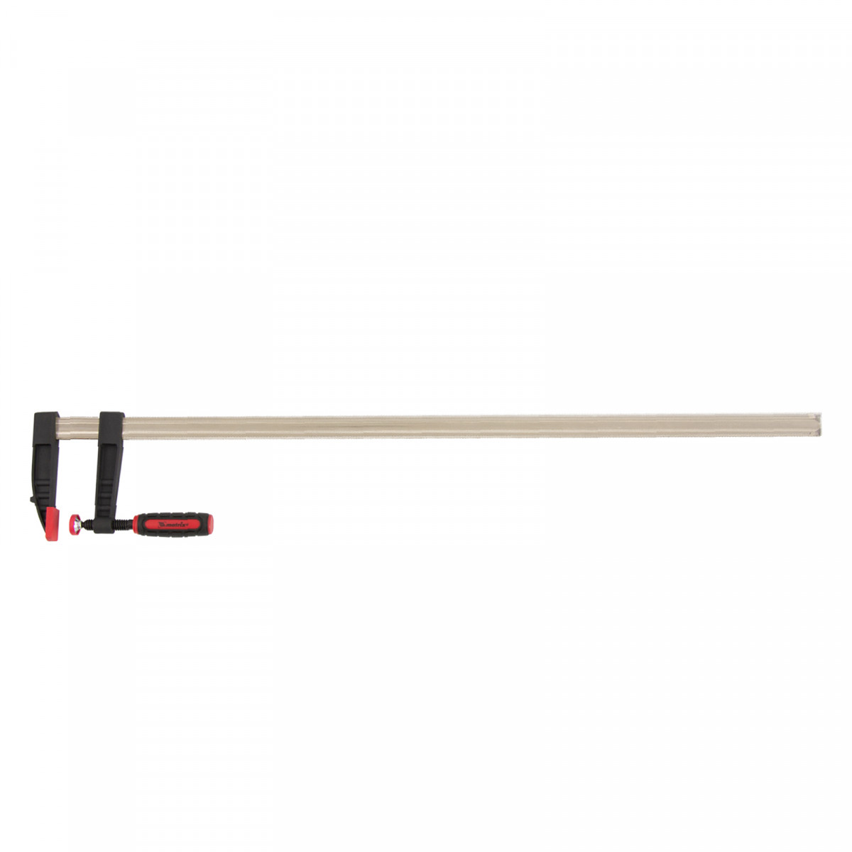 F-образная струбцина Matrix 20410 размером 1000 х 120 х 1100 мм используется для зажима металлических, деревянных и других заготовок для их последующей обработки или сборки. Представляет собой штангу, на которой установлено 2 кронштейна — неподвижный и подвижный. Деталь помещается между ними и прижимается к губкам при помощи винтового зажима с трапециевидной резьбой. Подвижный кронштейн позволяет регулировать величину захвата, которая может достигать 1000 мм. Струбцину применяют для выполнения слесарных и столярных работ.