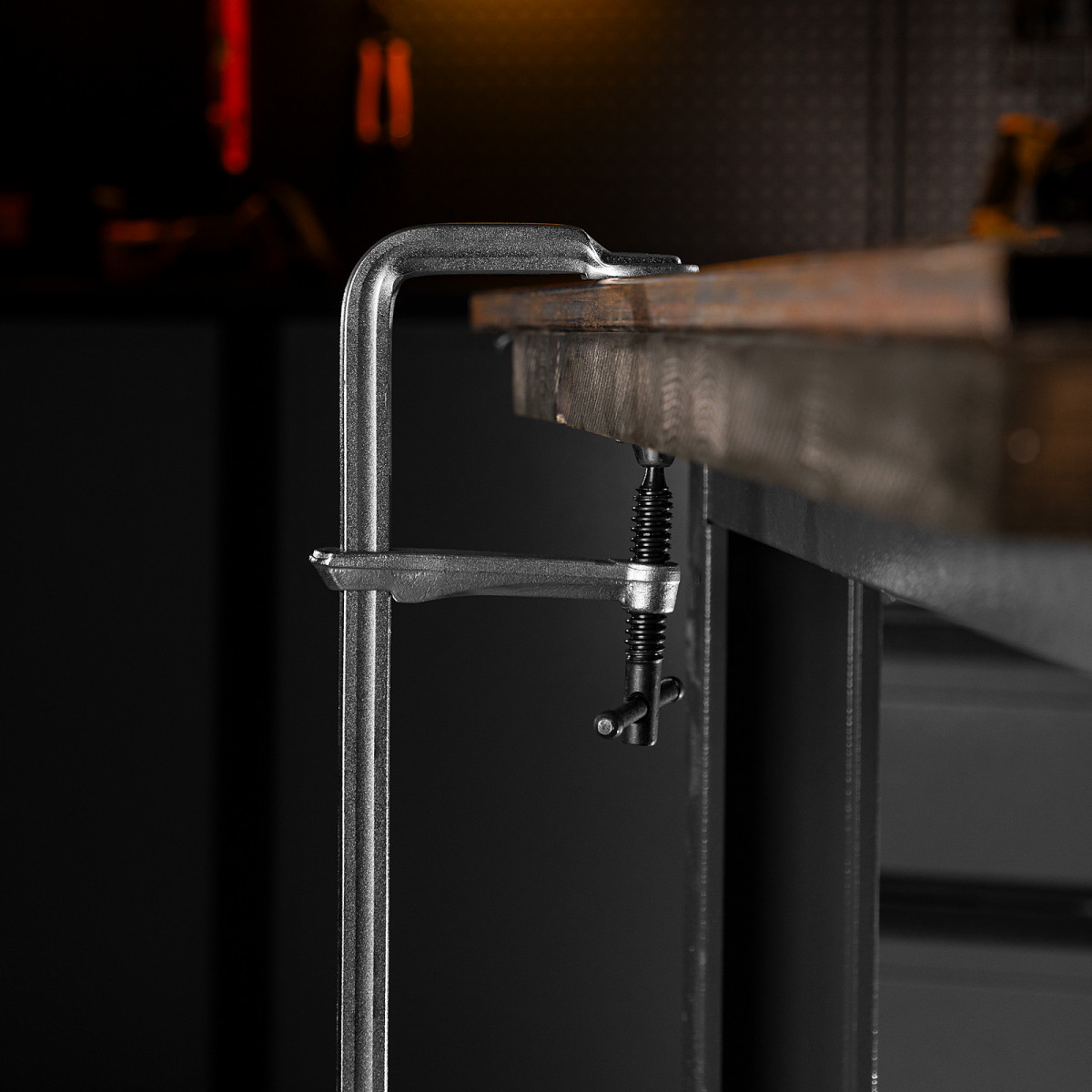Кованый корпус из стали 45 обеспечивает прочность струбцины до твердости 38-42 HRC.