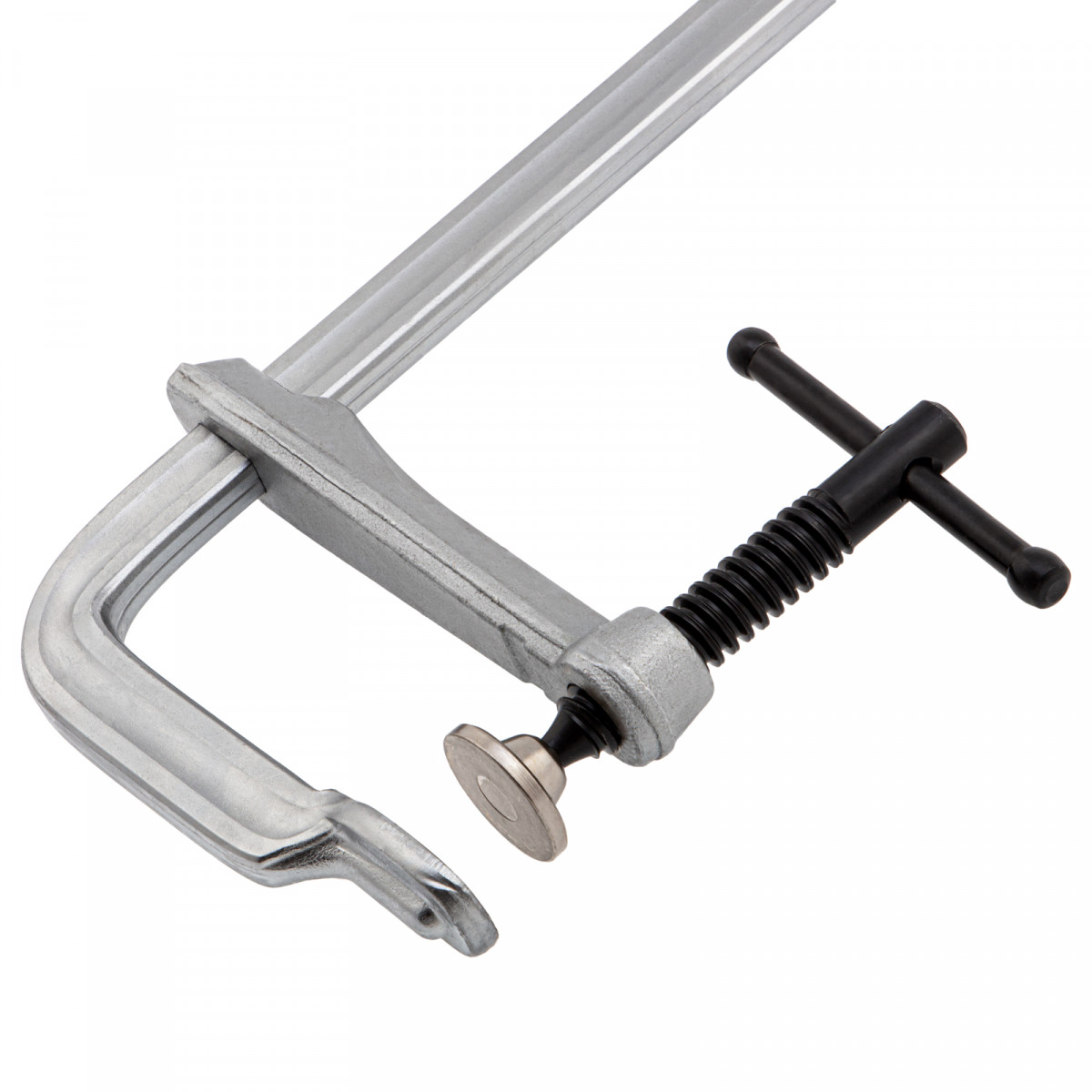 - Хромированное покрытие надежно защищает струбцину от коррозии.