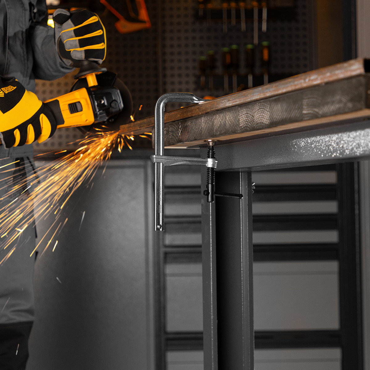 Кованая струбцина Denzel обладает высокой прочностью за счет корпуса из конструкционной стали и закалки до 38-42 HRC.