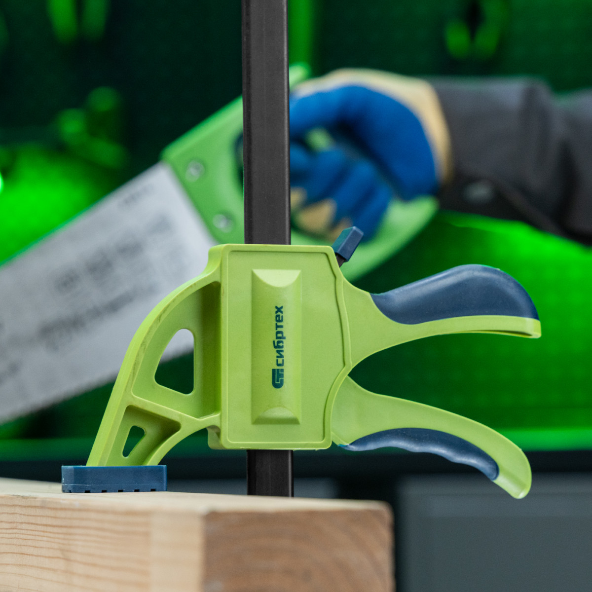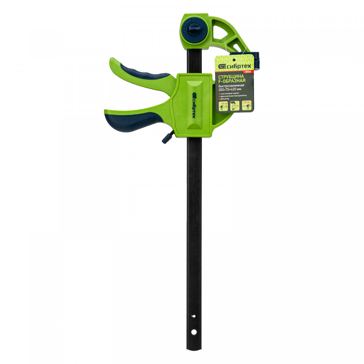 Струбцина F-образная, быстрозажимная, 200 х 70 х 420 мм, пластиковый корпус, фиксатор, двухкомпонентная рукоятка Сибртех