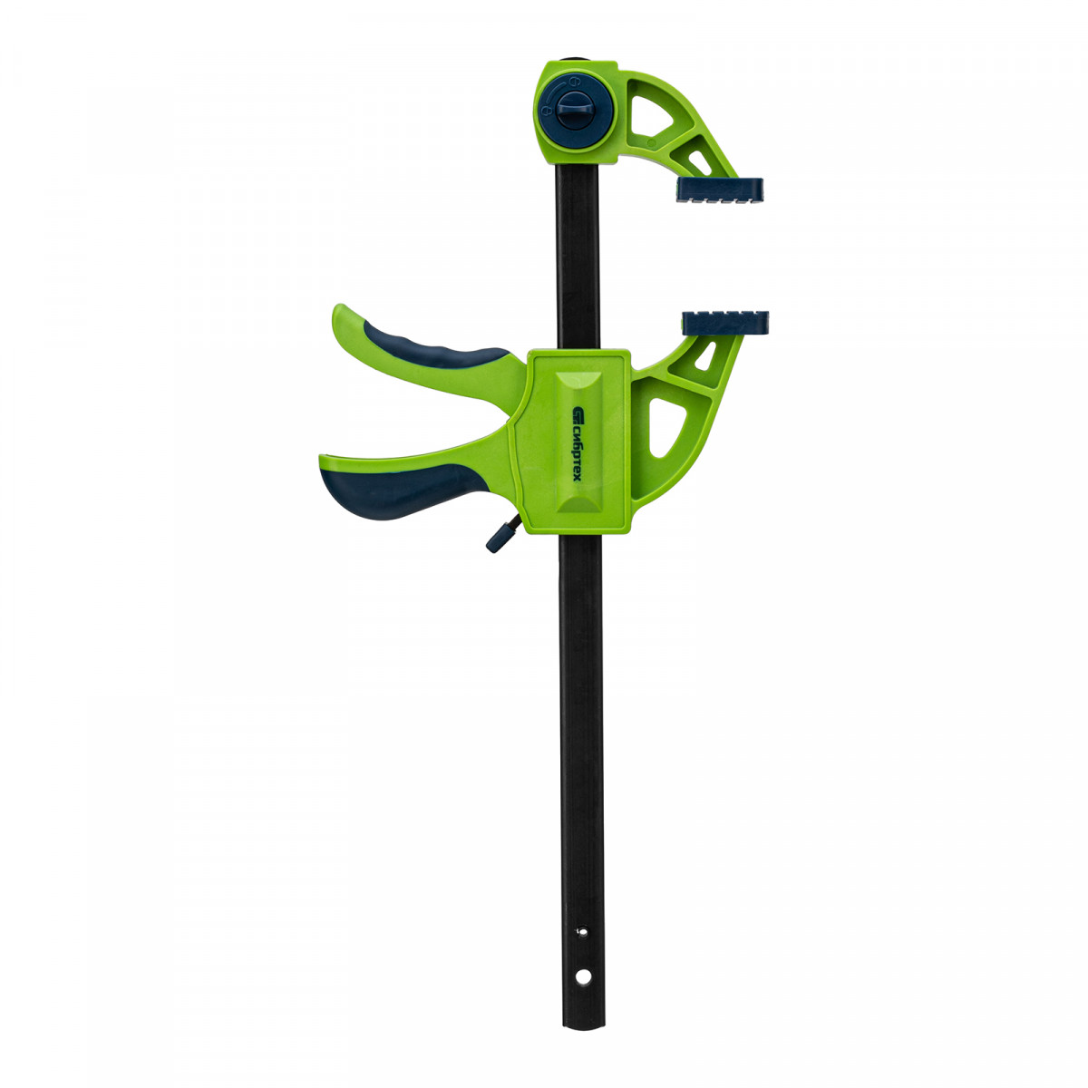 F-образная быстрозажимная струбцина Сибртех 20564 длиной 420 мм, с шириной и глубиной зажима 200 и 70 мм соответственно, в пластиковом корпусе, с фиксатором и двухкомпонентной рукояткой, позволяет зажимать заготовки для их дальнейшей обработки или сборки. Помогает решать множество задач благодаря оптимальной глубине зажима. Пластинчатый механизм пошагово перемещает подвижную губку вдоль направляющей до достижения максимально плотного захвата детали. Фиксатор препятствует движению губки в обратную сторону. Струбцина пригодится в столярной мастерской, а также будет полезна в быту.