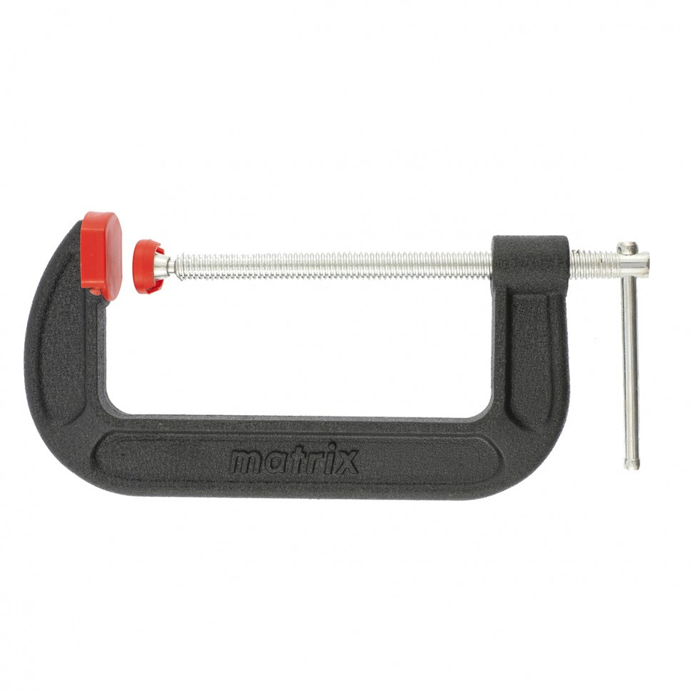 Струбцина G-образная Matrix 20606 с максимальной шириной зажима 150 мм используется для фиксации заготовок или закрепления их на верстаке или станке. Позволяет склеивать детали, а также сверлить их, шлифовать, опиливать и проводить другие работы. Подходит для использования во время сварки. Стальной винт и рама из высокопрочного чугуна выдерживают значительные нагрузки. Винт с трапециевидной резьбой обеспечивает надежную фиксацию предметов. Струбцина применяется в слесарном и столярном деле, а также в домашнем хозяйстве.