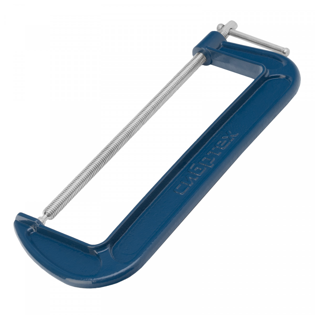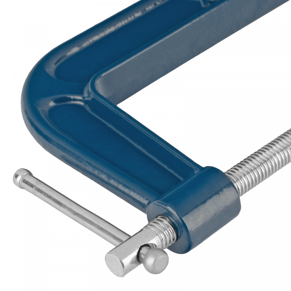 Струбцина G-образная Сибртех 20592 с шириной зажима 300 мм применяется для фиксации заготовок с целью их склеивания, а также для крепления к верстаку или станку для опиливания, сверления и другой обработки. Может использоваться во время сварки металлических деталей. Рама выполнена из чугуна с шаровидным графитом, поэтому отличается высокой прочностью и устойчивостью к нагрузкам. Струбцина пригодится в слесарной и столярной мастерской, а также будет полезна в домашнем хозяйстве.