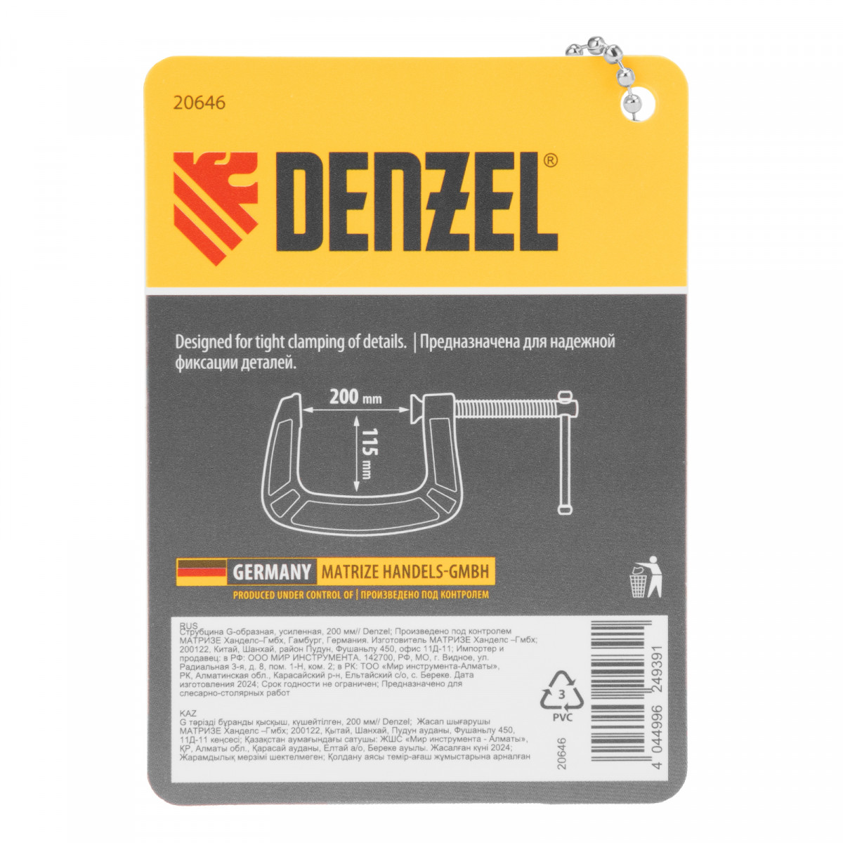 Струбцина G-образная, усиленная, 200 мм Denzel