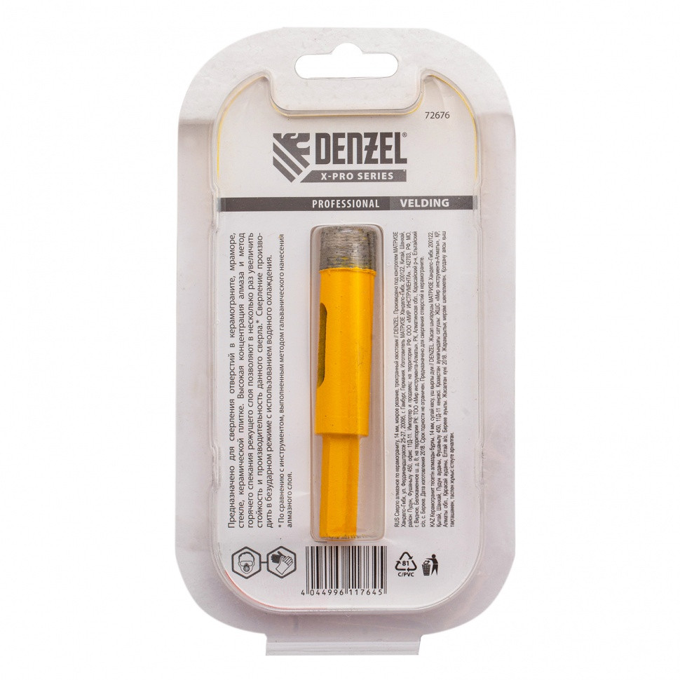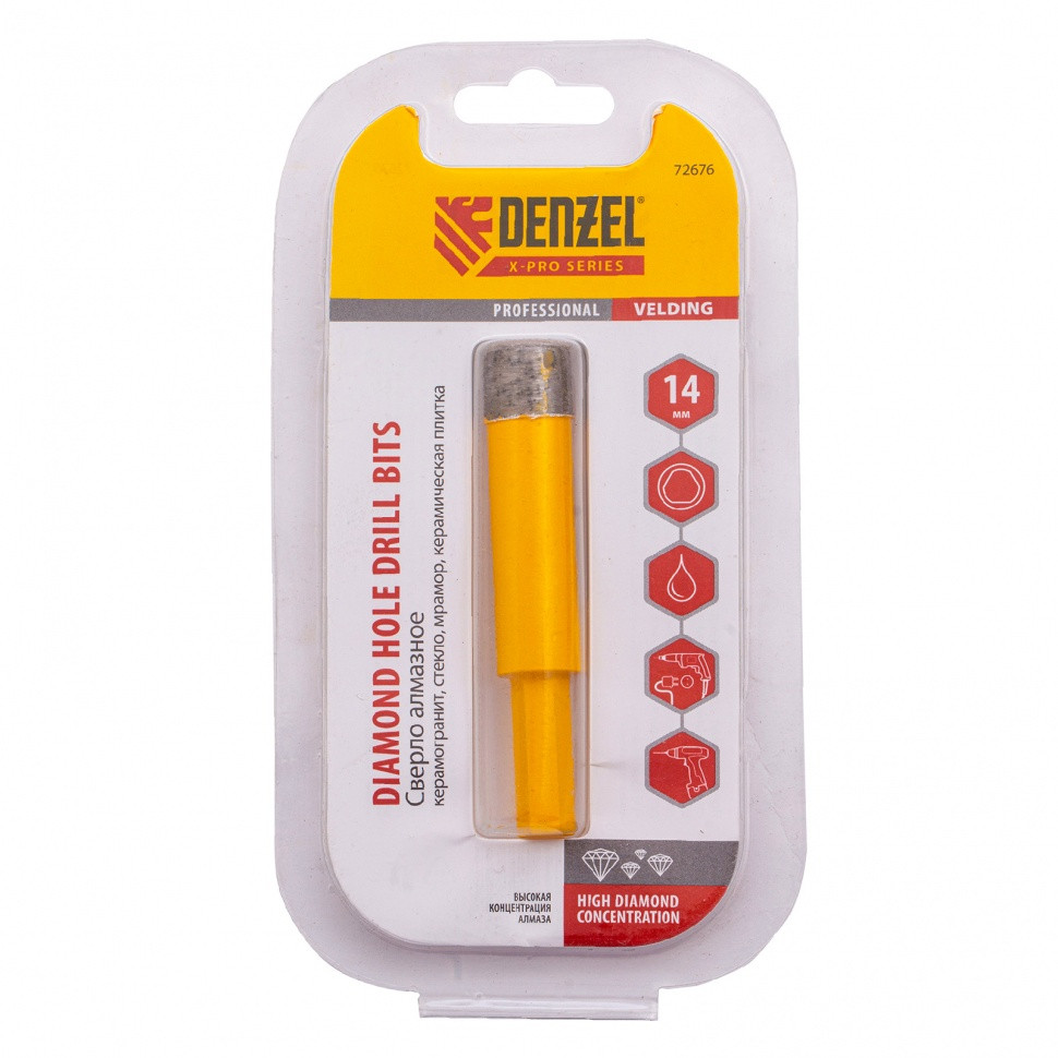 Сверло алмазное по керамограниту, 14 мм, мокрая резка, трехгранный хвостовик Denzel