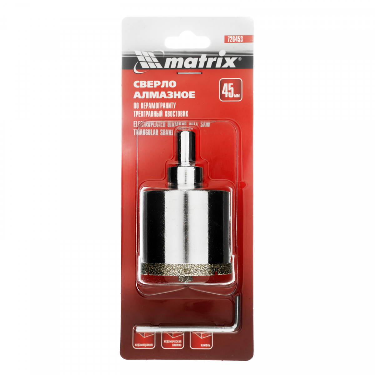 Сверло алмазное по керамограниту, 45 х 67 мм, трехгранный хвостовик Matrix