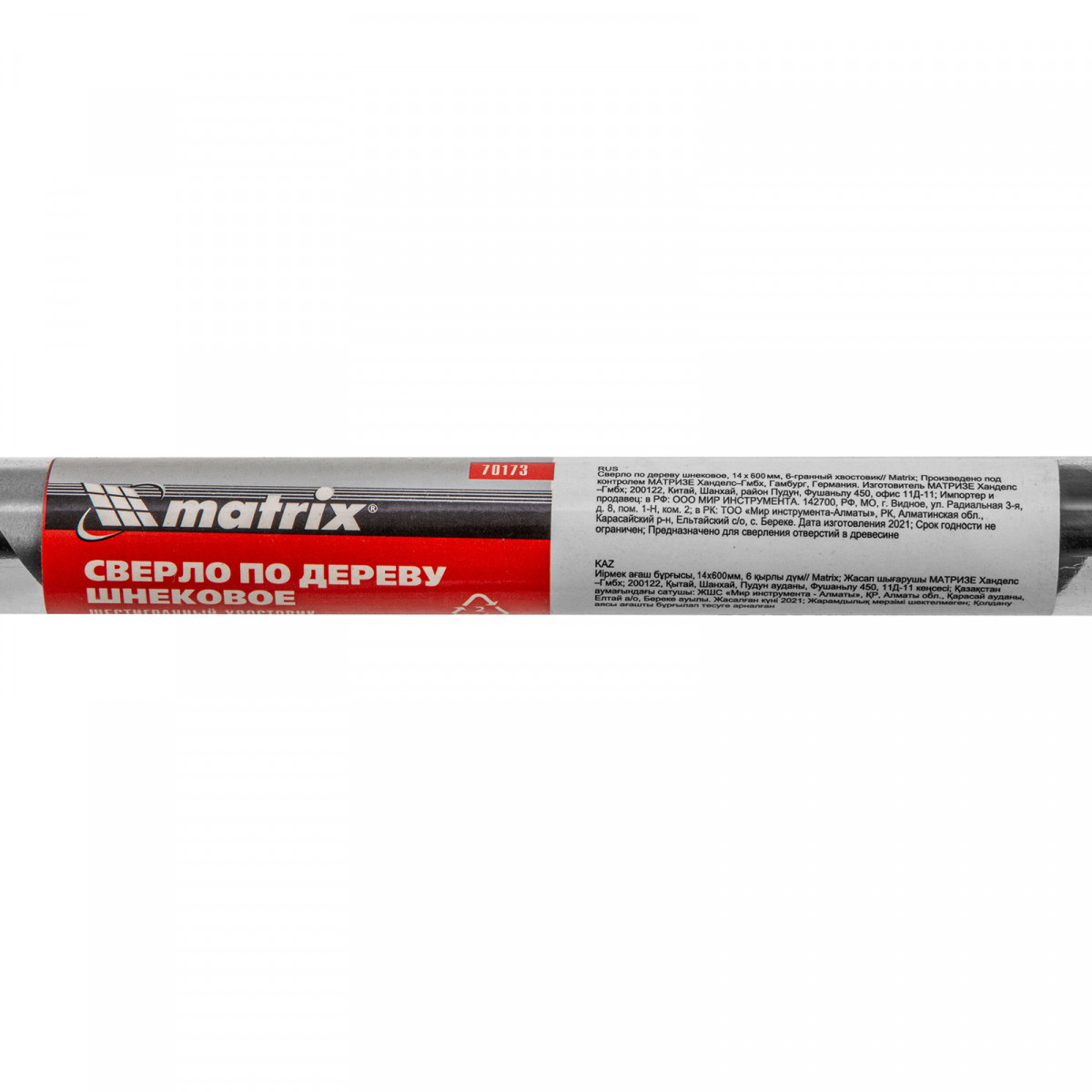 Сверло по дереву шнековое, 14 х 600 мм, шестигранный хвостовик Matrix