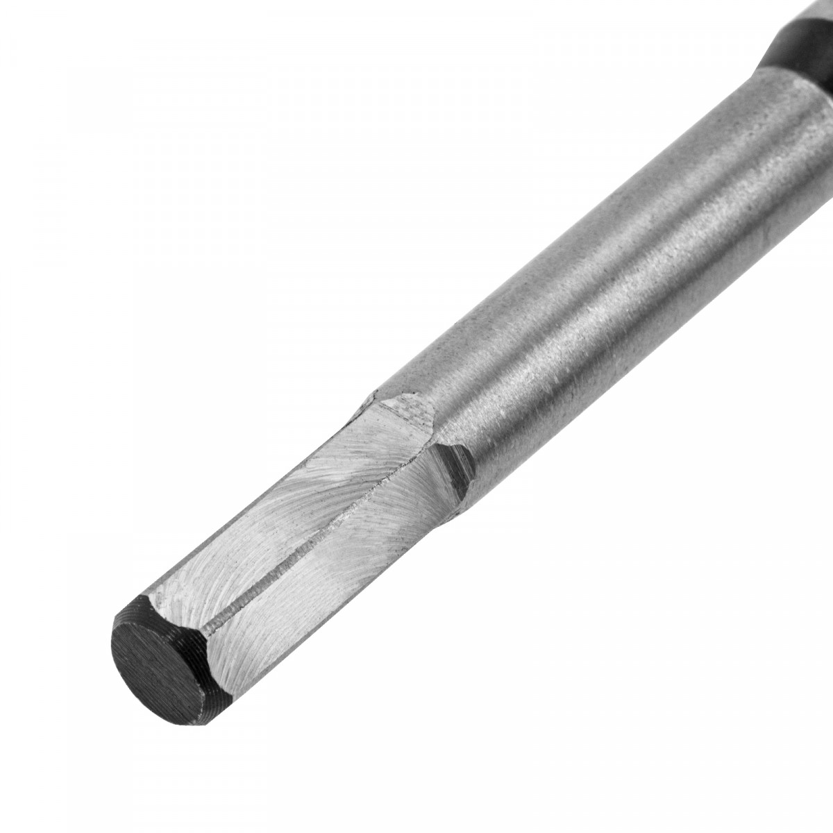 - Прочность и износостойкость — сверло изготовлено из инструментальной стали, а режущая часть закалена до твердости 40 HRC.