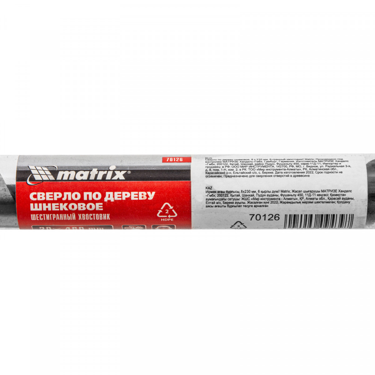 Сверло по дереву шнековое, 20 х 460 мм, шестигранный хвостовик Matrix