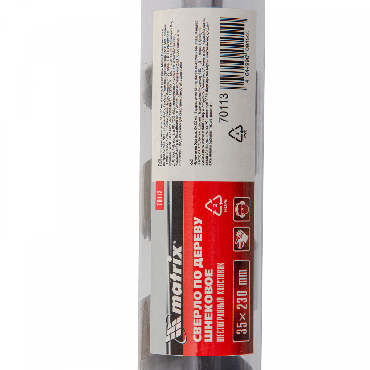 Сверло по дереву шнековое, 35 х 230 мм, шестигранный хвостовик Matrix