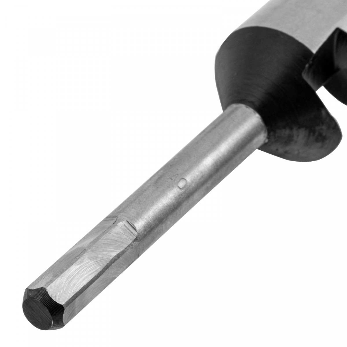 Шестигранный хвостовик предотвращает проворачивание сверла в патроне.