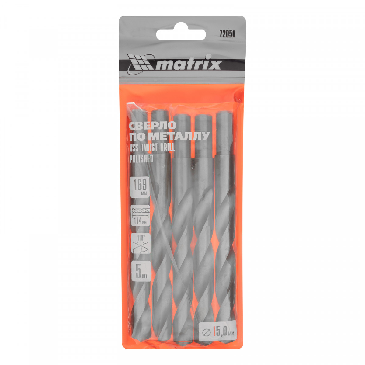 Полированное сверло по металлу Matrix 72050 из стали HSS, с цилиндрическим хвостовиком, 5 шт. в упаковке, используется для получения отверстий диаметром 15 мм. Угол заточки составляет 118°, поэтому сверло оптимально для работы с черными металлами, сталью, чугуном и твердой бронзой.