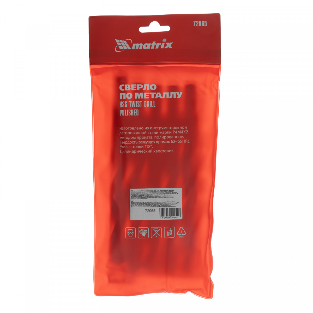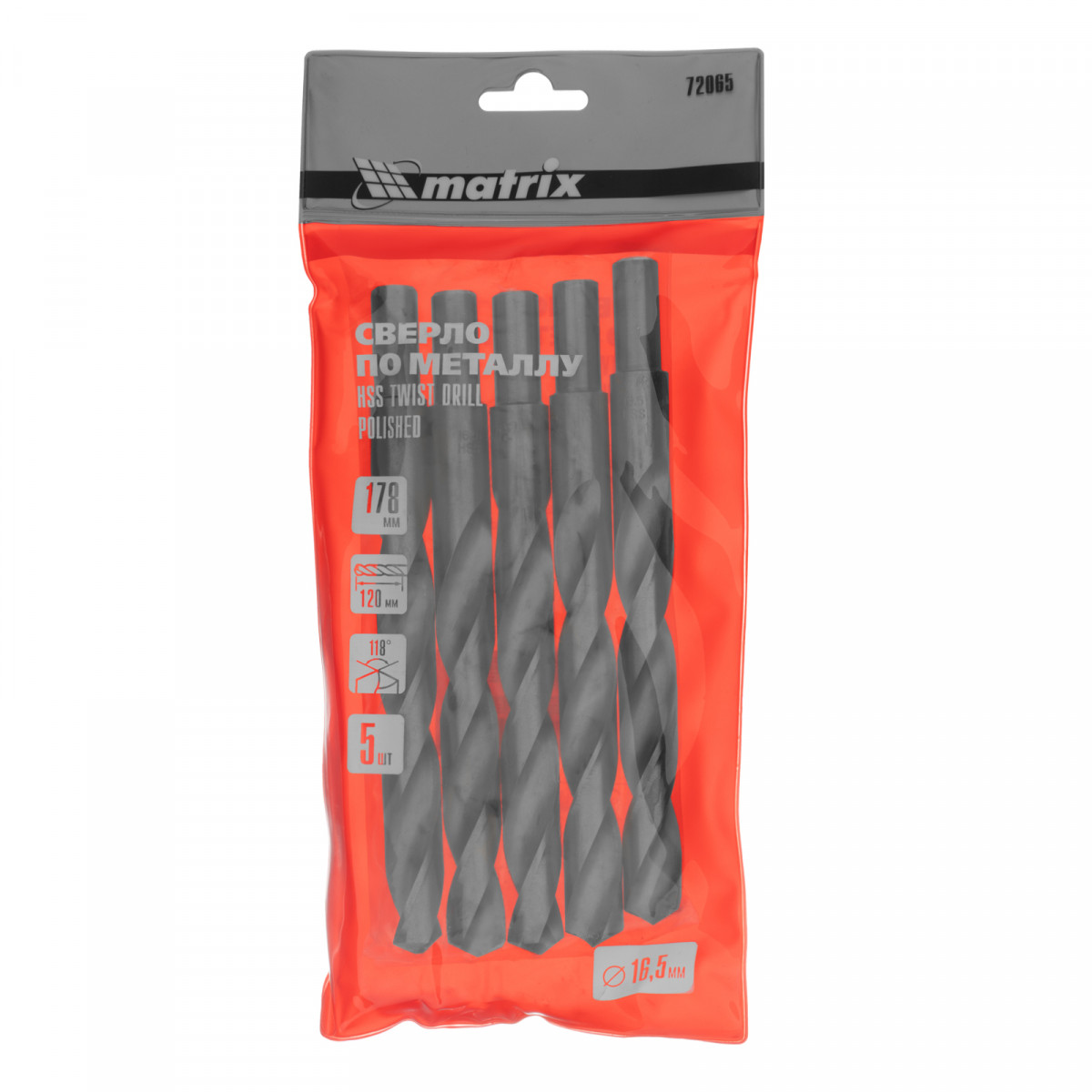Сверло по металлу, 16.5 мм, полированное, HSS, 5 шт, цилиндрический хвостовик Matrix