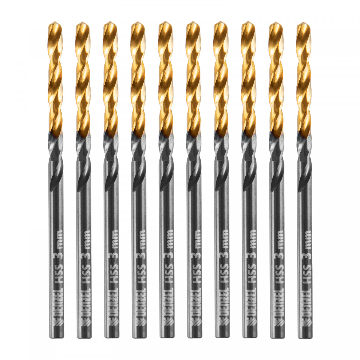 Сверло по металлу, 3 мм, HSS-Tin, Golden Tip, 10 шт. Denzel