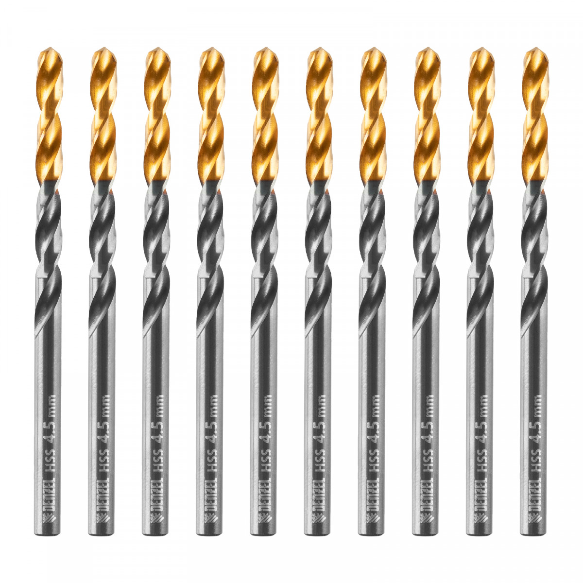 Сверло по металлу, 4,5 мм, HSS-Tin, Golden Tip, 10 шт. Denzel