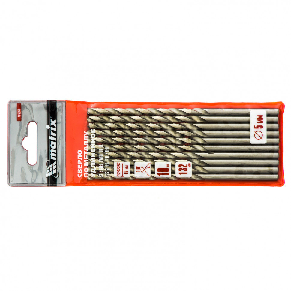 Сверло по металлу, 5 х 132 мм, полированное, удл, HSS, 10 шт, цилиндрический хвостовик Matrix