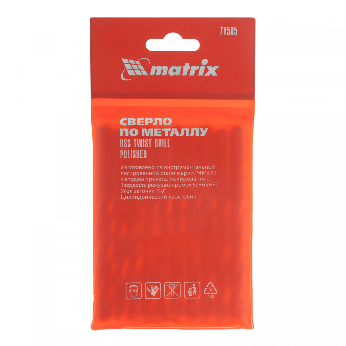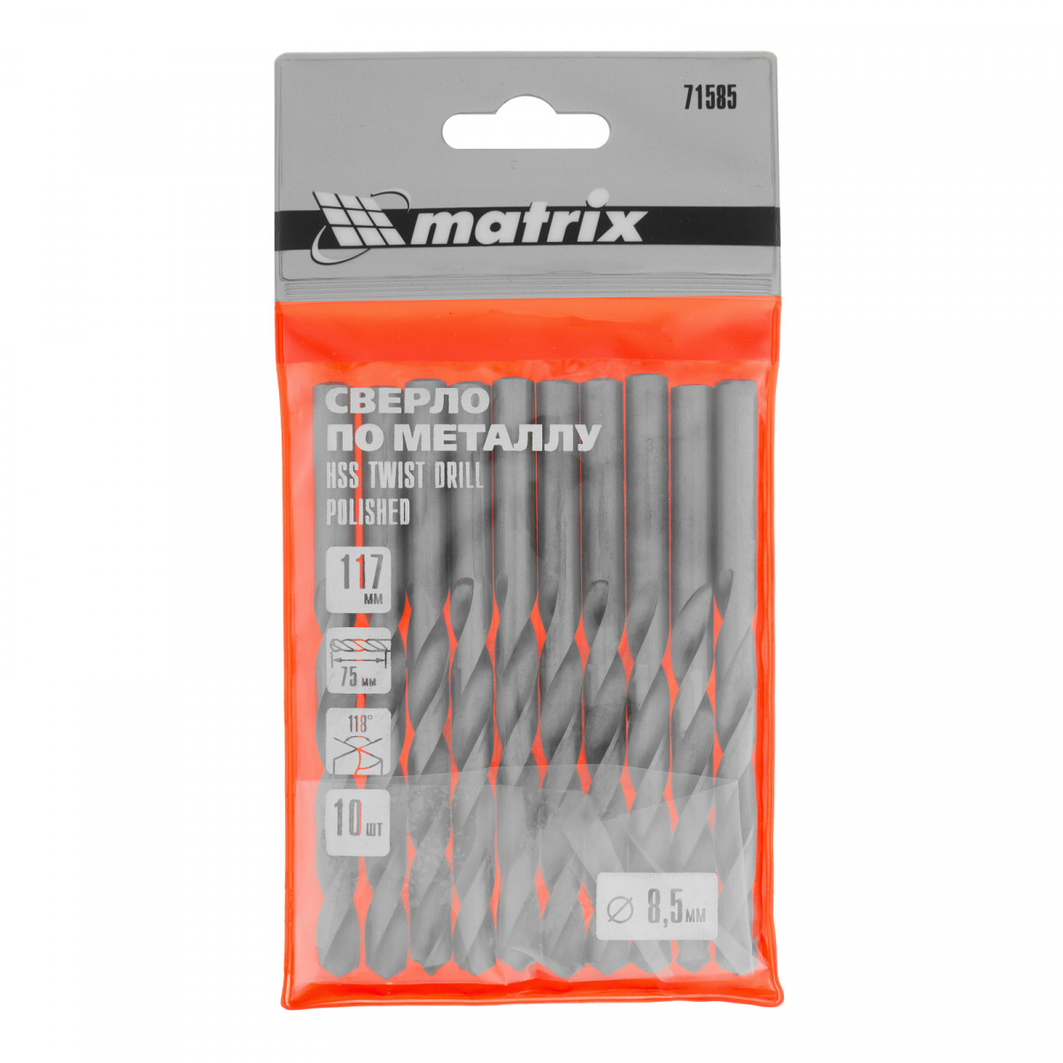 Сверло по металлу, 8.5 мм, полированное, HSS, 10 шт, цилиндрический хвостовик Matrix