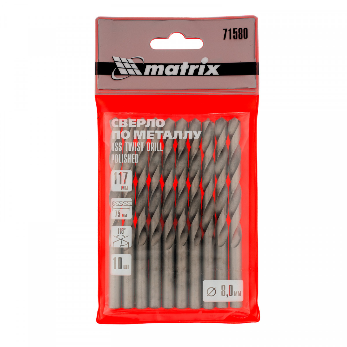 Полированное сверло по металлу Matrix 71580 из стали HSS, с цилиндрическим хвостовиком, 10 шт. в упаковке, используется для получения отверстий диаметром 8,0 мм. Угол заточки составляет 118 градусов, поэтому сверло оптимально для работы с черными металлами, сталью, чугуном и твердой бронзой.