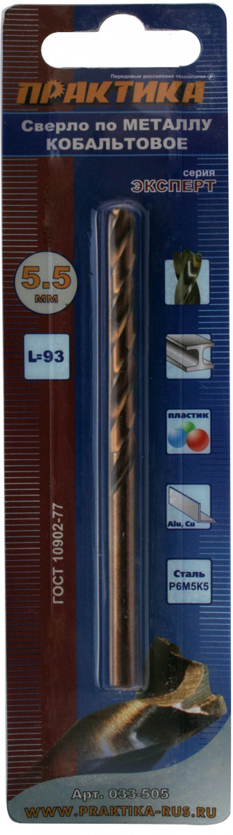 Сверло по металлу кобальтовое ПРАКТИКА 4,0 х 75 мм Р6М5К5, (1шт.) блистер