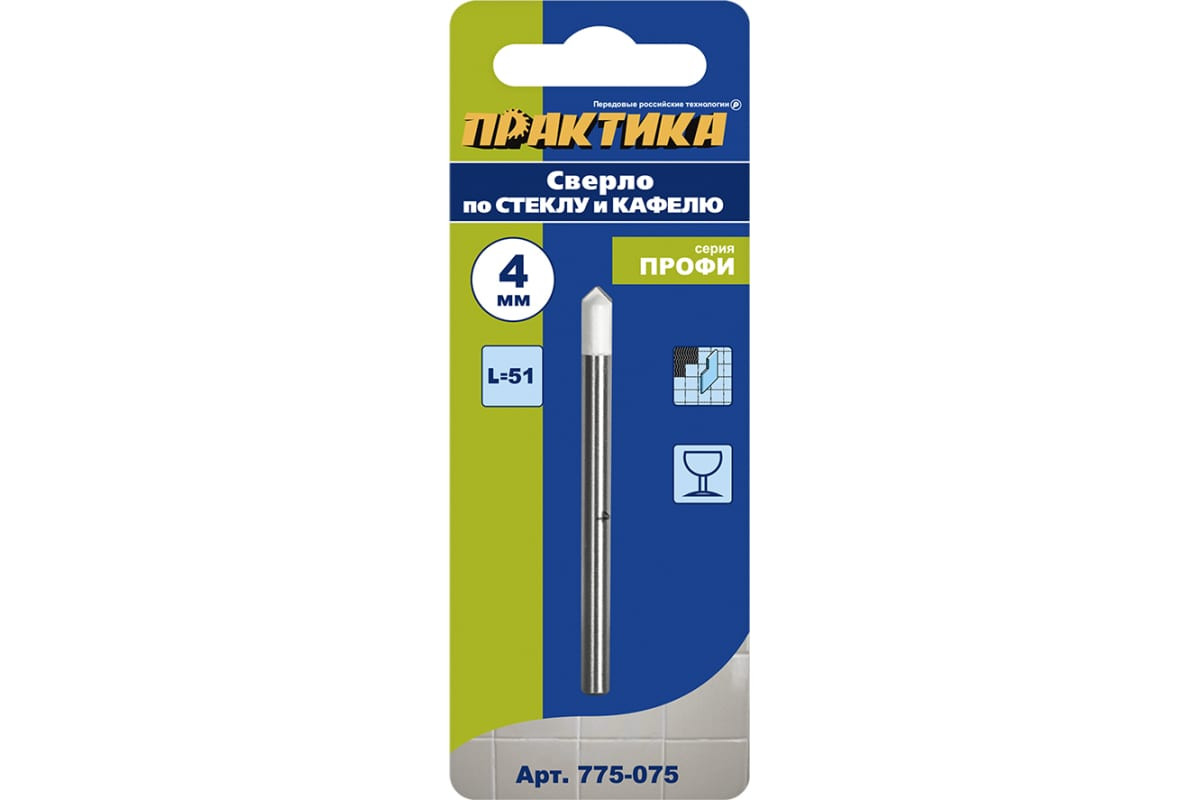 Сверло по стеклу и кафелю Практика Профи V-тип 4*51 мм (1шт) блистер