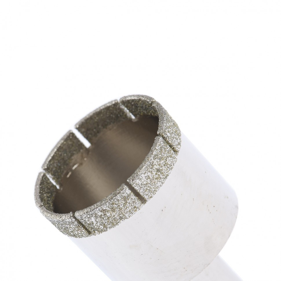 Сверло Сибртех 726327 размером 32 х 55 мм, с цилиндрическим хвостовиком, используется для получения ровных отверстий без сколов в стекле и керамической плитке. Устанавливается в патрон дрели или шуруповерта, работающих в диапазоне 350-700 об/мин. Во время работы рекомендуется применять водяное охлаждение — это существенно увеличит ресурс оснастки. Использование кондуктора (арт. 72830) позволяет точно позиционировать сверло и облегчает засверливание. Оснастка подходит для выполнения работ небольшого объема и рекомендована для использования в быту.