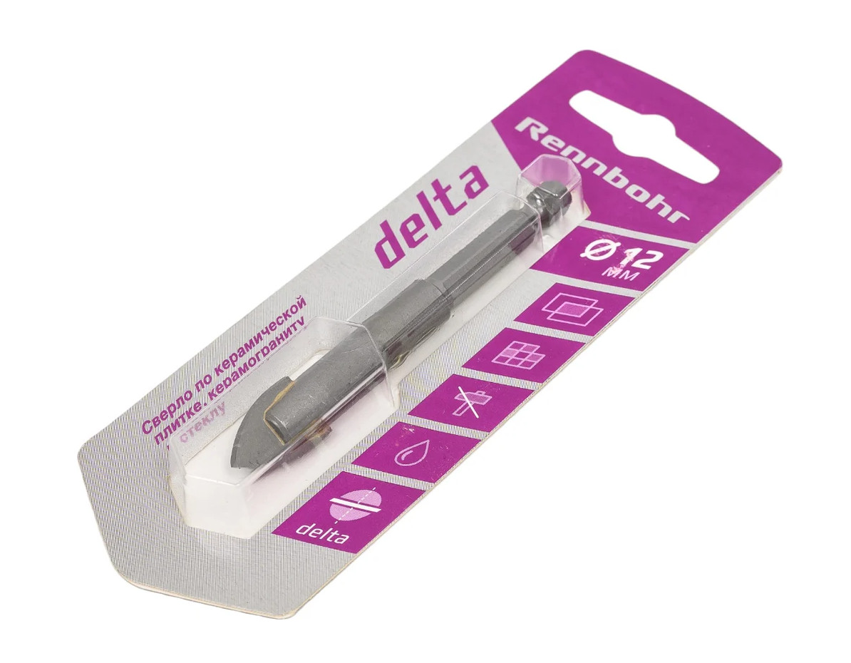 Сверло по стеклу и керамике Ø 12.0х85.0 мм ш/хв Rennbohr Delta блистер