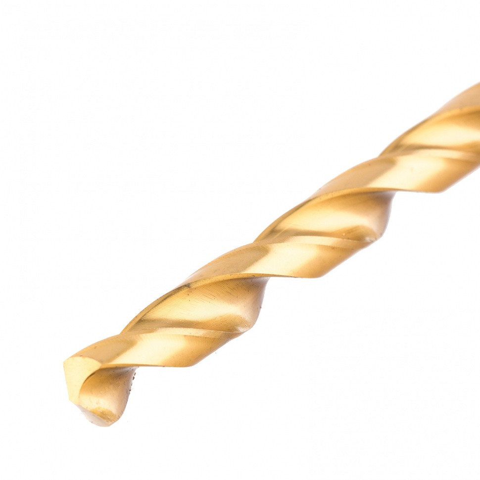 - Надежность — сверло изготовлено из универсальной быстрорежущей стали HSS, нитридтитановое покрытие защищает от коррозии и обеспечивает стойкость к перегреву.