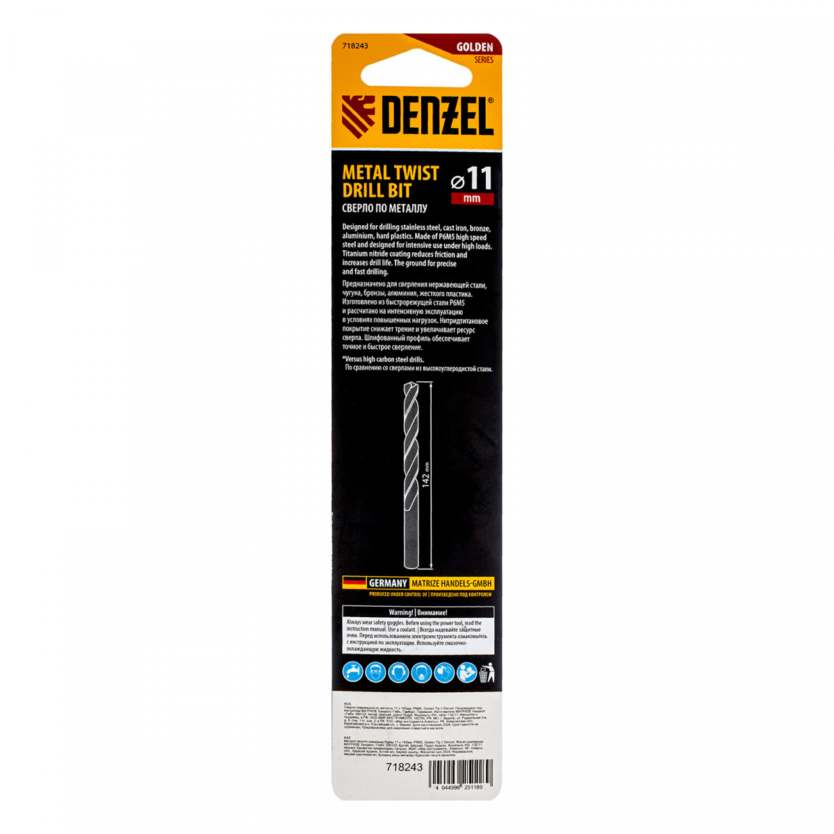 Сверло спиральное по металлу 11 x 142 мм, Р6М5, Golden Tip Denzel