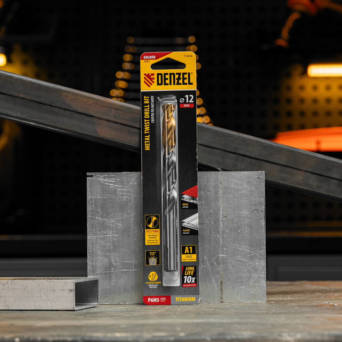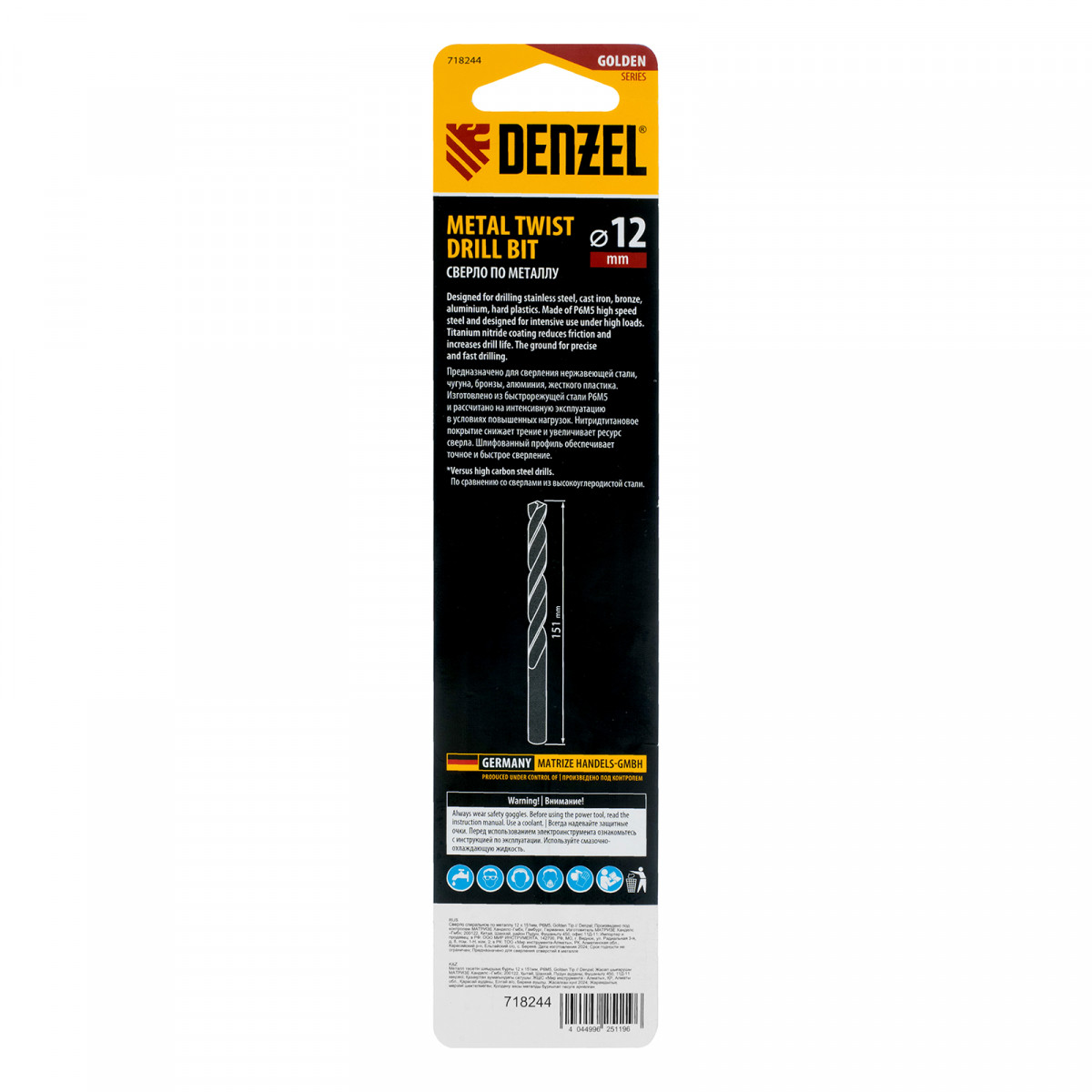 Сверло спиральное по металлу 12 x 151 мм, Р6М5, Golden Tip Denzel