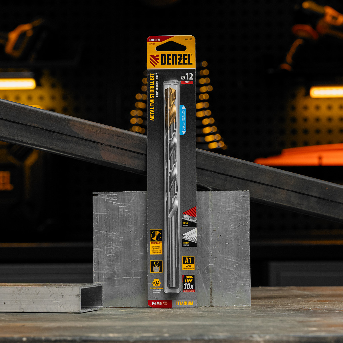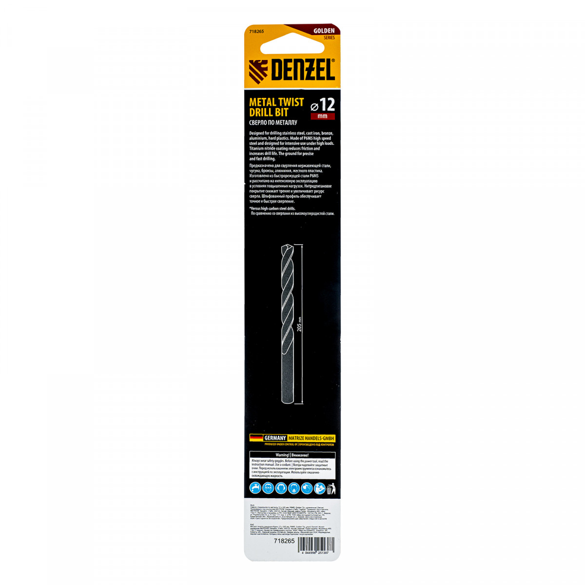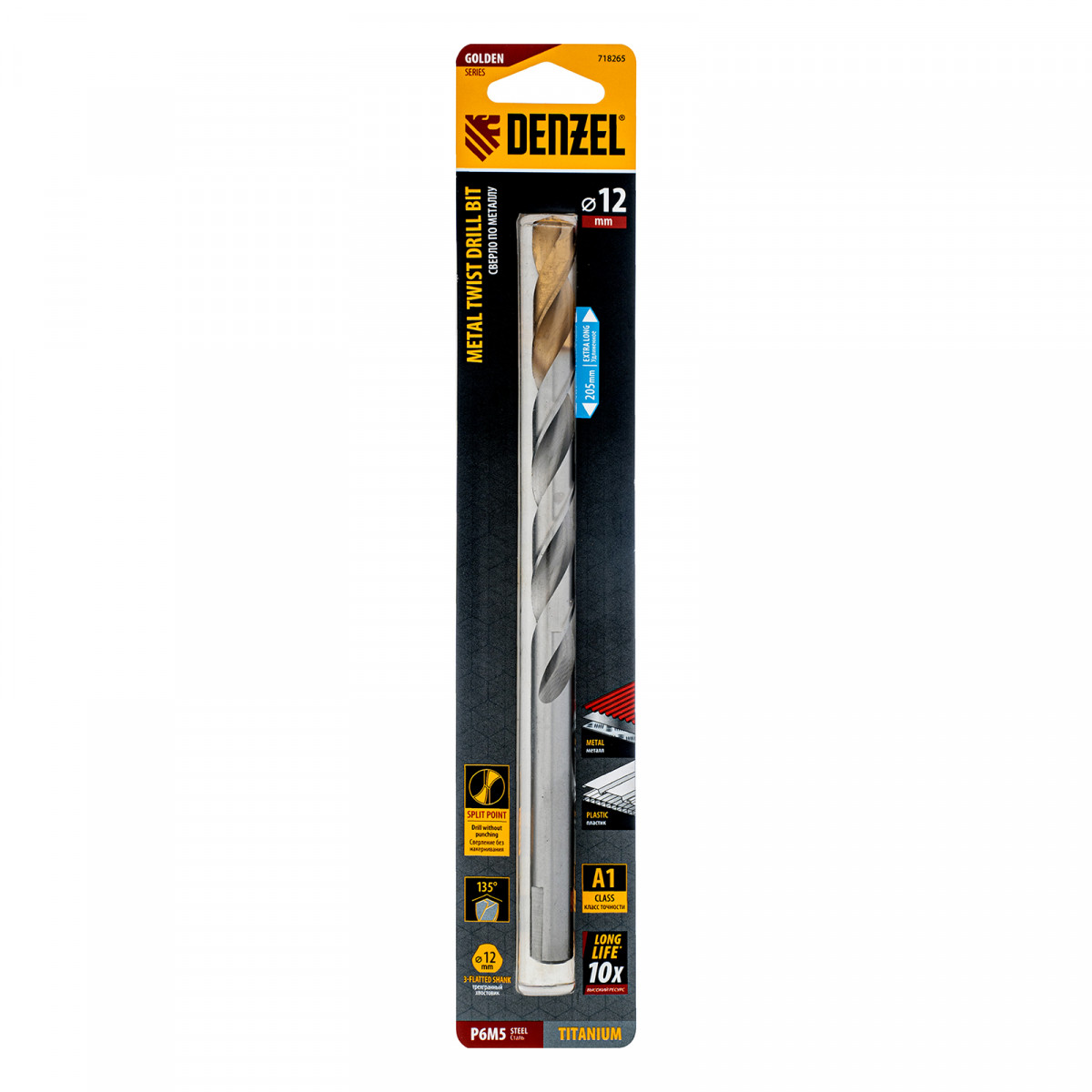 Сверло спиральное по металлу 12 x 205 мм, Р6М5, Golden Tip, удлиненное Denzel