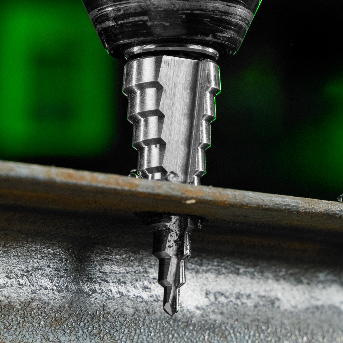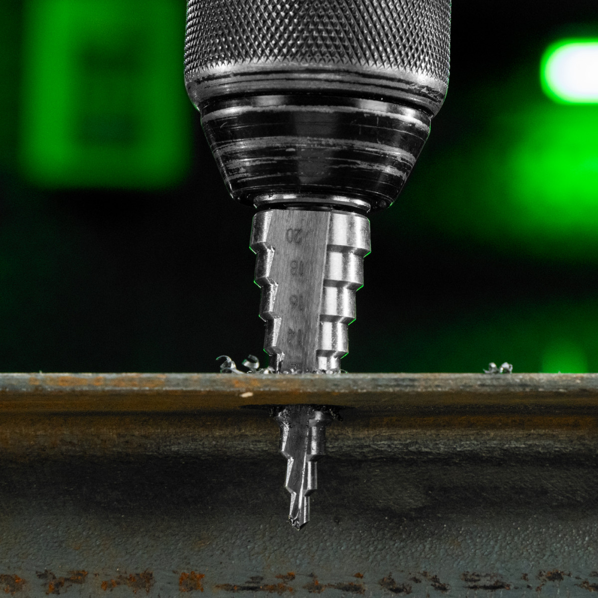 Ступенчатое сверло Сибртех 723012 предназначено для сверления отверстий диаметром от 4 до 20 мм в сталях, цветных металлах и пластике. Избавляет от необходимости иметь при себе целый набор традиционных сверл. Позволяет получать отверстия с ровными краями и уже снятой фаской под гайку или болт. Сверло пригодится дома и в мастерской.
