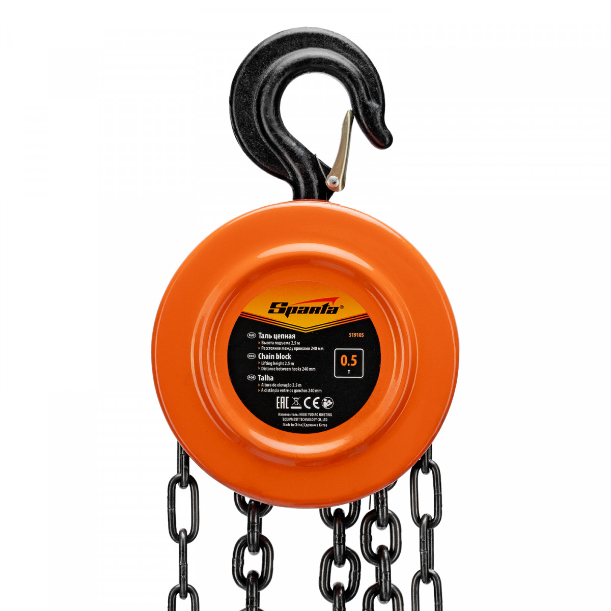 Таль цепная, 0.5 т, H подъема 2.5 м, расстояние между крюками 240 мм Sparta