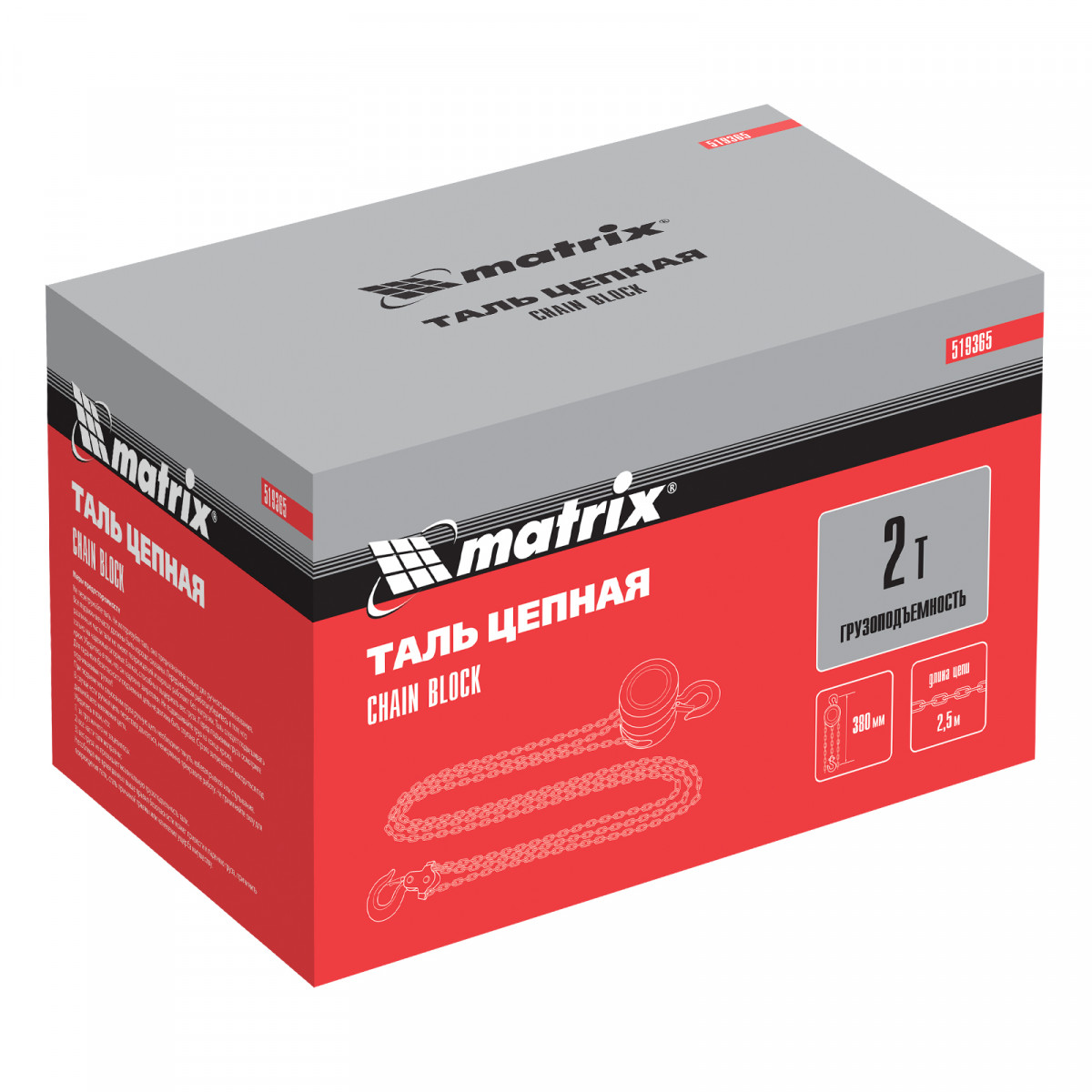 Таль цепная, 2 т, H подъема 2.5 м, расстояние между крюками 380 мм Matrix