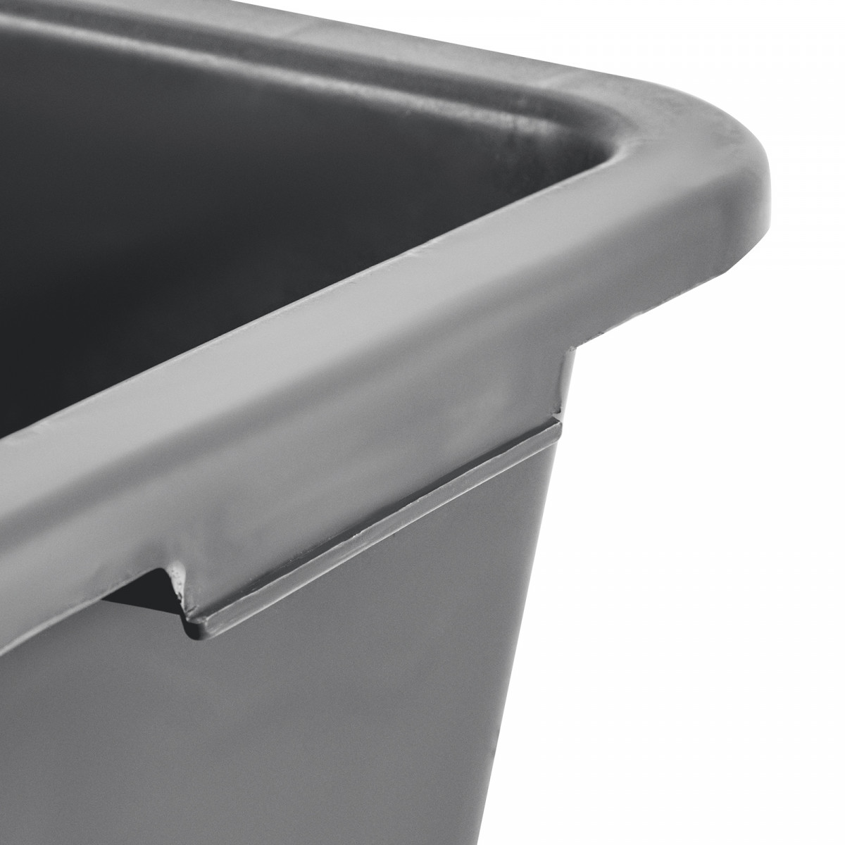Таз прямоугольный строительный усиленный Matrix 81471 объемом 55 л используется для приготовления растворов любого типа при проведении ремонтно-отделочных работ. Благодаря габаритам 415 х 415 мм и вместительной глубине 290 мм изделие можно применять для объемных работ. Пригодится такой таз и в быту: он удобен для хранения сыпучих материалов, сбора и утилизации садового и строительного мусора. Изделие не повреждается от растворов и применения отделочных инструментов при замешивании.
