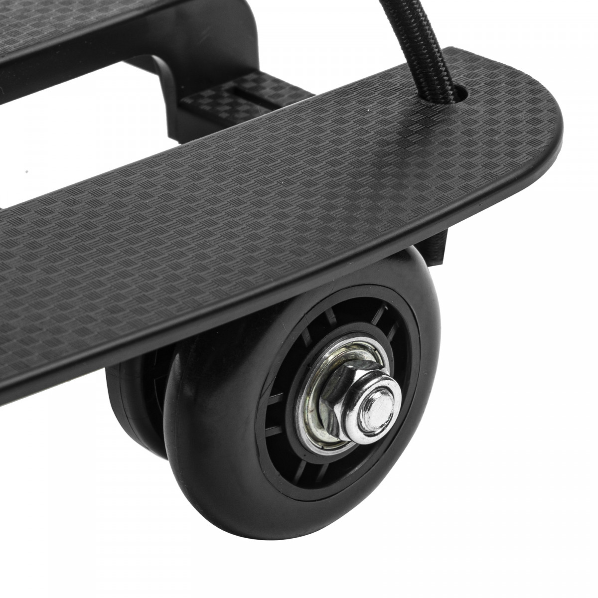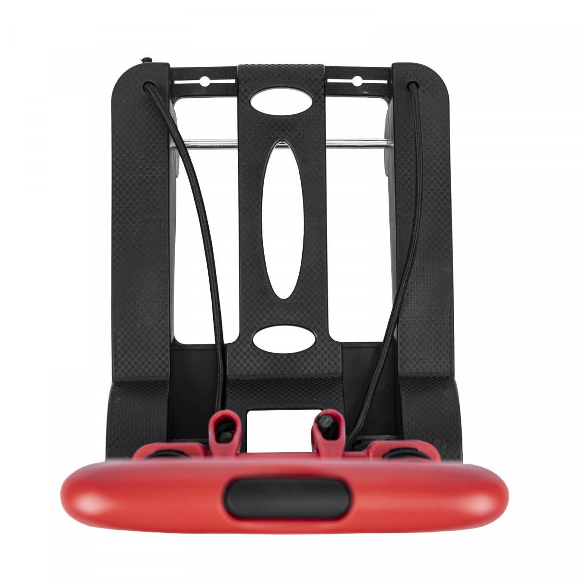 - Надежная фиксация груза — крепкие багажные резинки удерживают его на платформе.