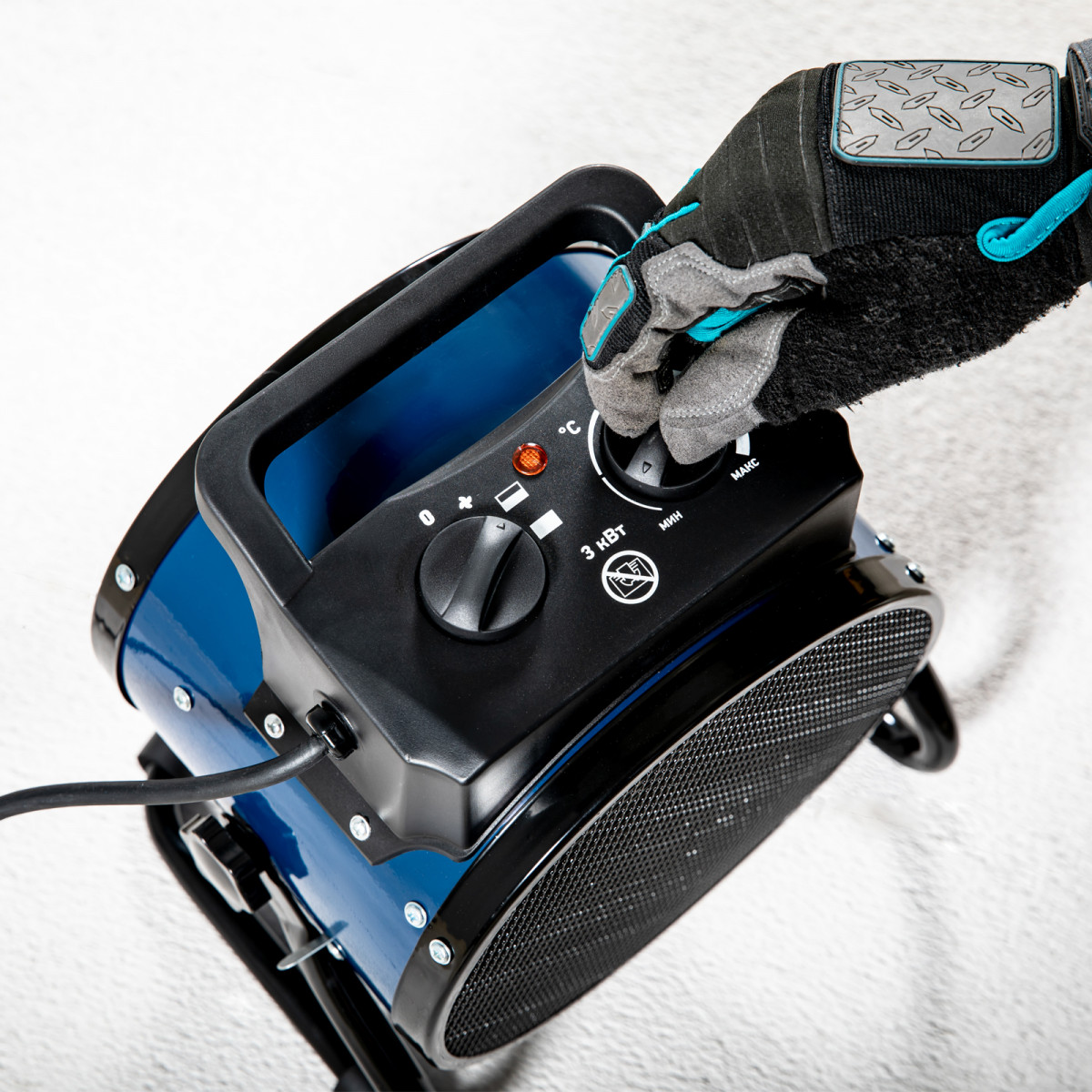 - Комфортная транспортировка — тепловая пушка весом 2,3 кг оснащена удобной ручкой.