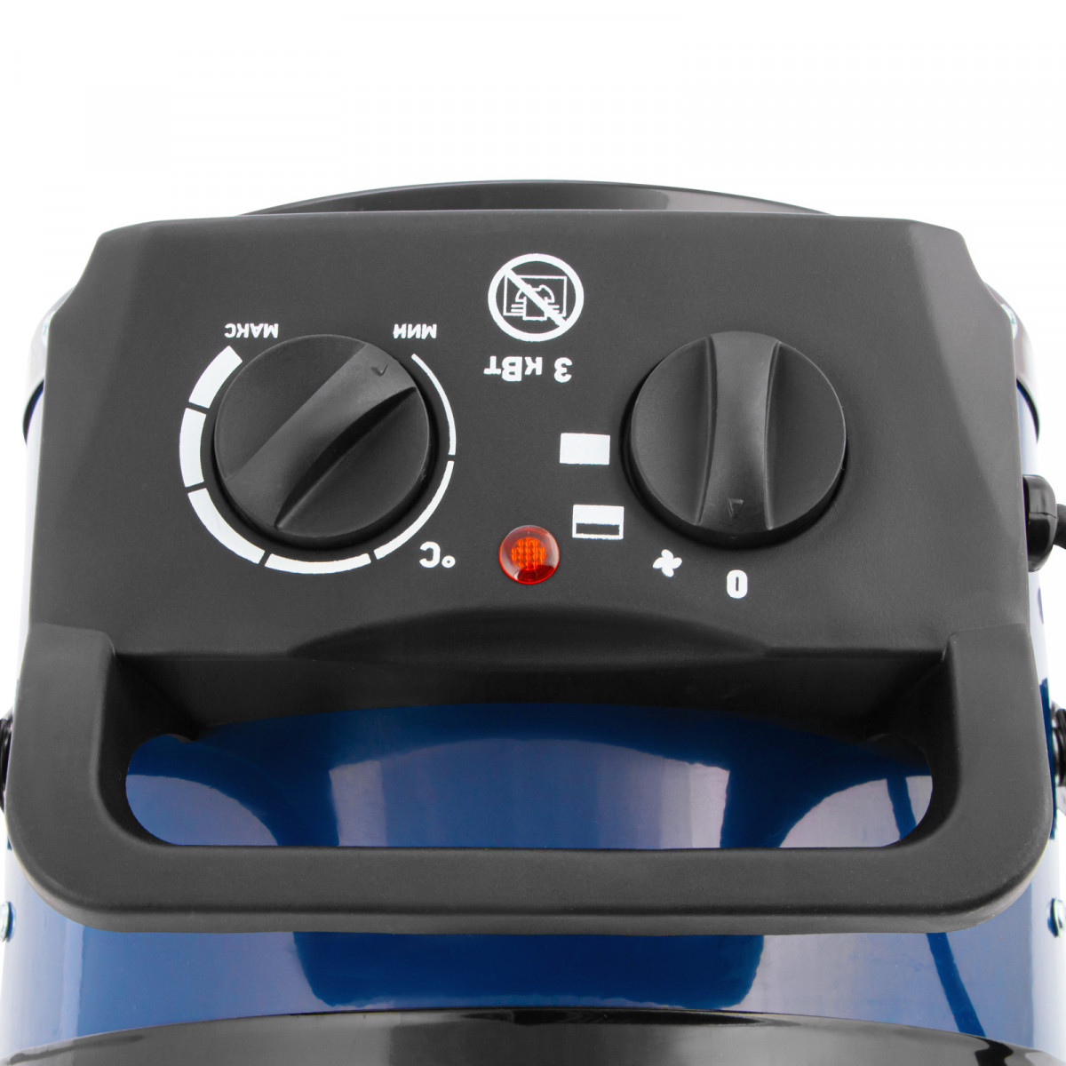 - Удобная эксплуатация — в верхней части корпуса расположен блок управления с поворотным переключателем режимов и регулятором термостата.