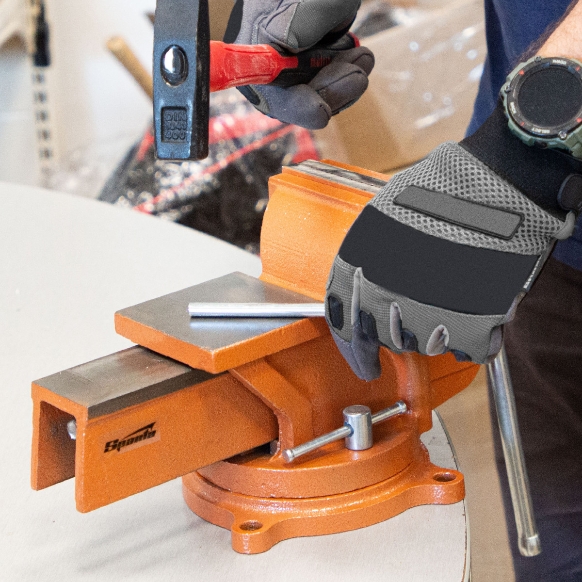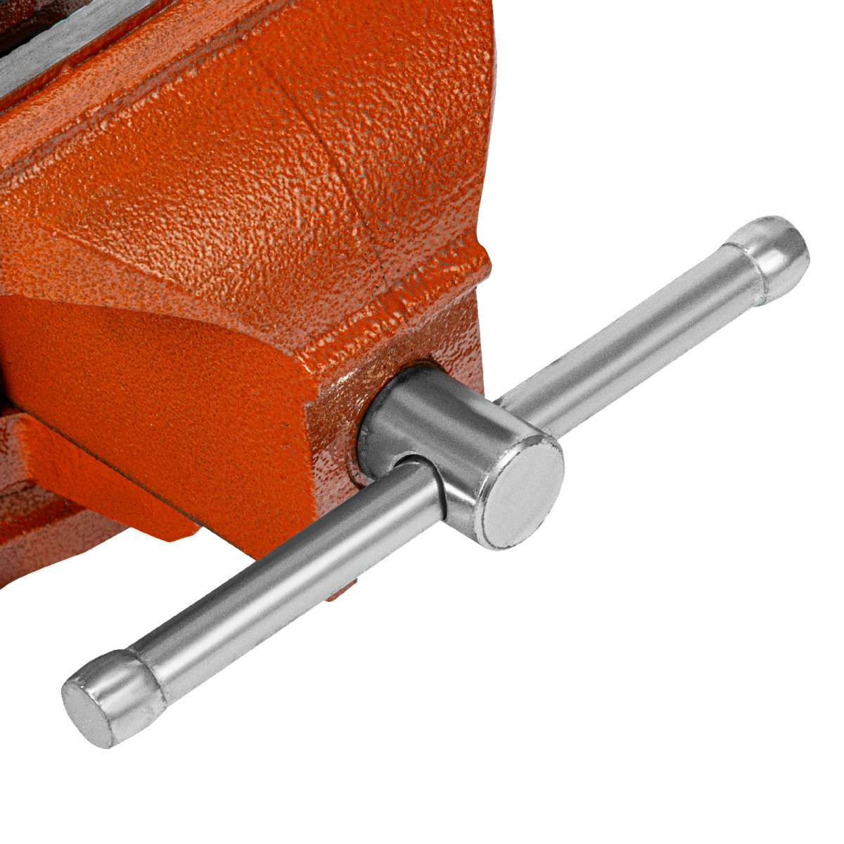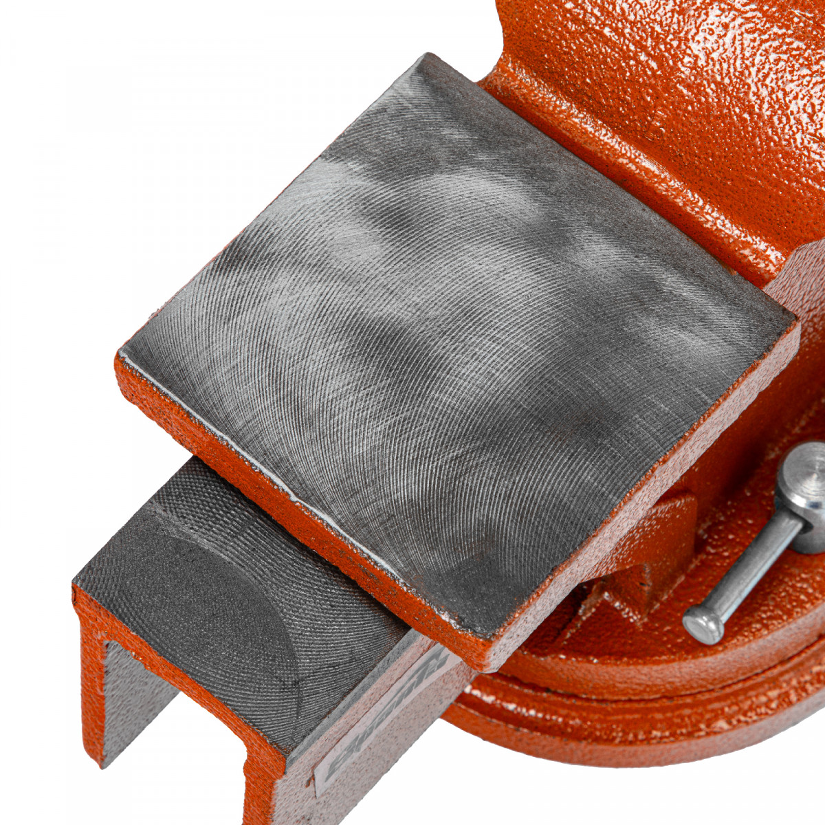 Поворотные тиски Sparta с наковальней обеспечивают надежный захват изделий благодаря рельефным прижимным губкам.