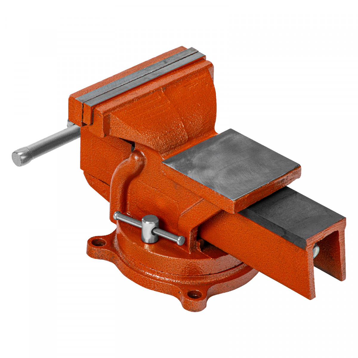 Поворотные слесарные тиски Sparta 186275 с наковальней, ширина губок 150 мм, — это небольшой инструмент для захвата деталей до 125 мм. Будут полезны в частной мастерской или гараже для удобства обработки крупногабаритных заготовок.