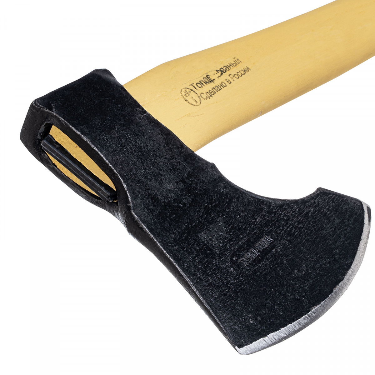 - Клин в месте всада — топорище надежно закреплено в голове.