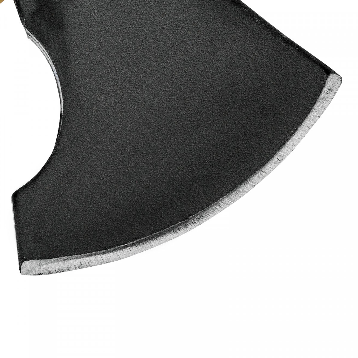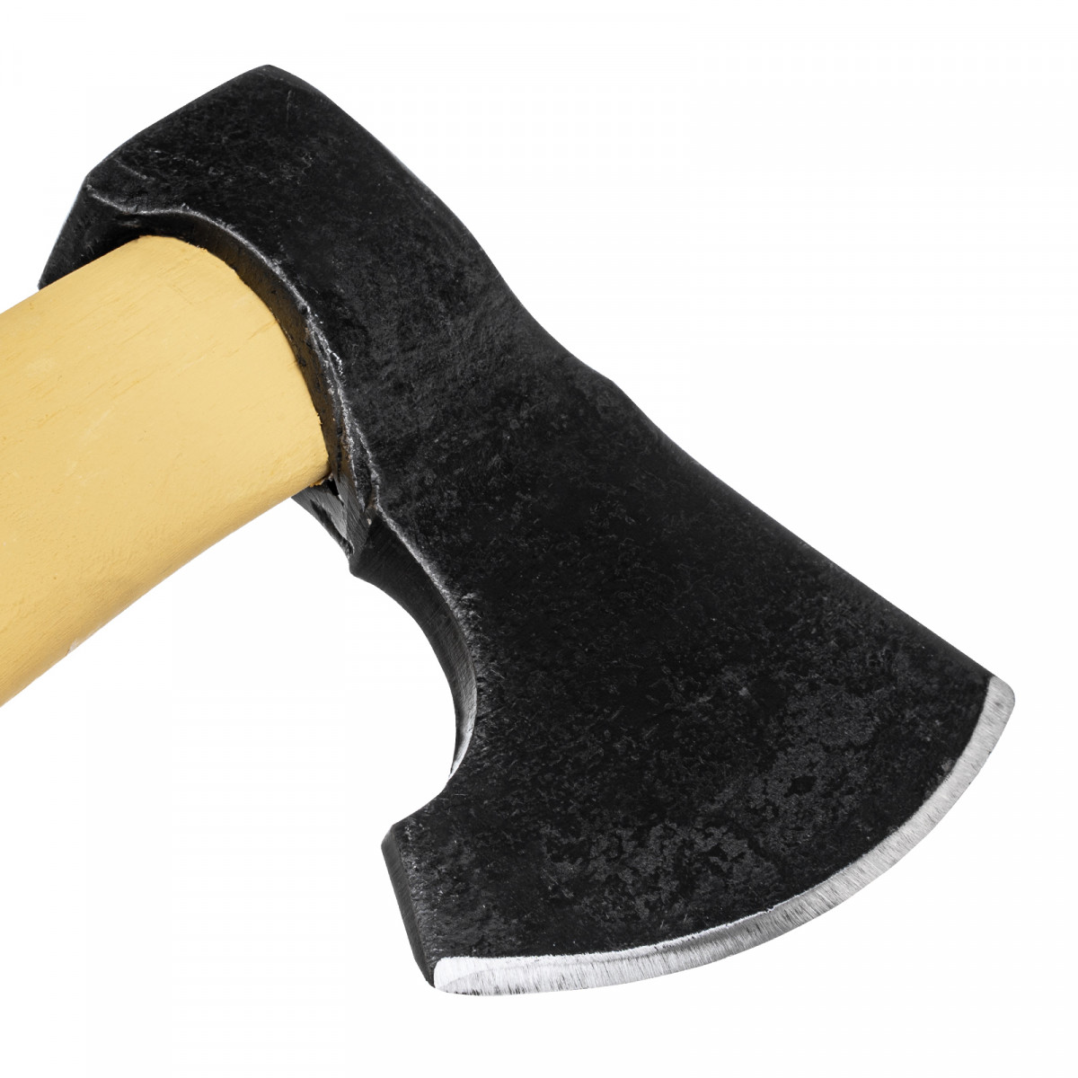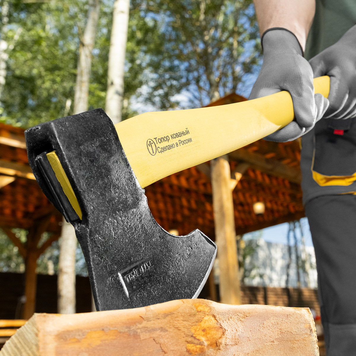 - Большая сила удара — топор весит 1480 г и имеет рукоятку длиной 520 мм.