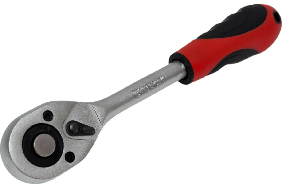 Трещотка используется при работах с торцовочными головками.Изготовлена из высокопрочной стали, обладает высокой прочностью и стойкостью к коррозии.Флажковый механизм трещотки позволяет переключать направление рабочего вращения.Устройство быстрого сброса надежно фиксирует насадку на приводе и легко от нее освобождается одним нажатием на кнопку.