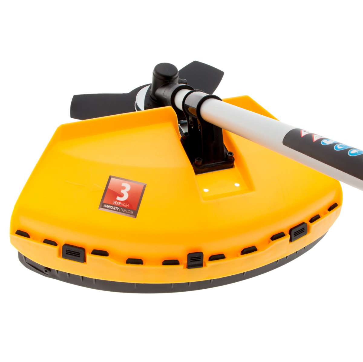 • Автоматическое подравнивание лески — ограничительный нож на кожухе отрезает лишний корд, что позволяет предотвратить перегрузку и перегрев двигателя.