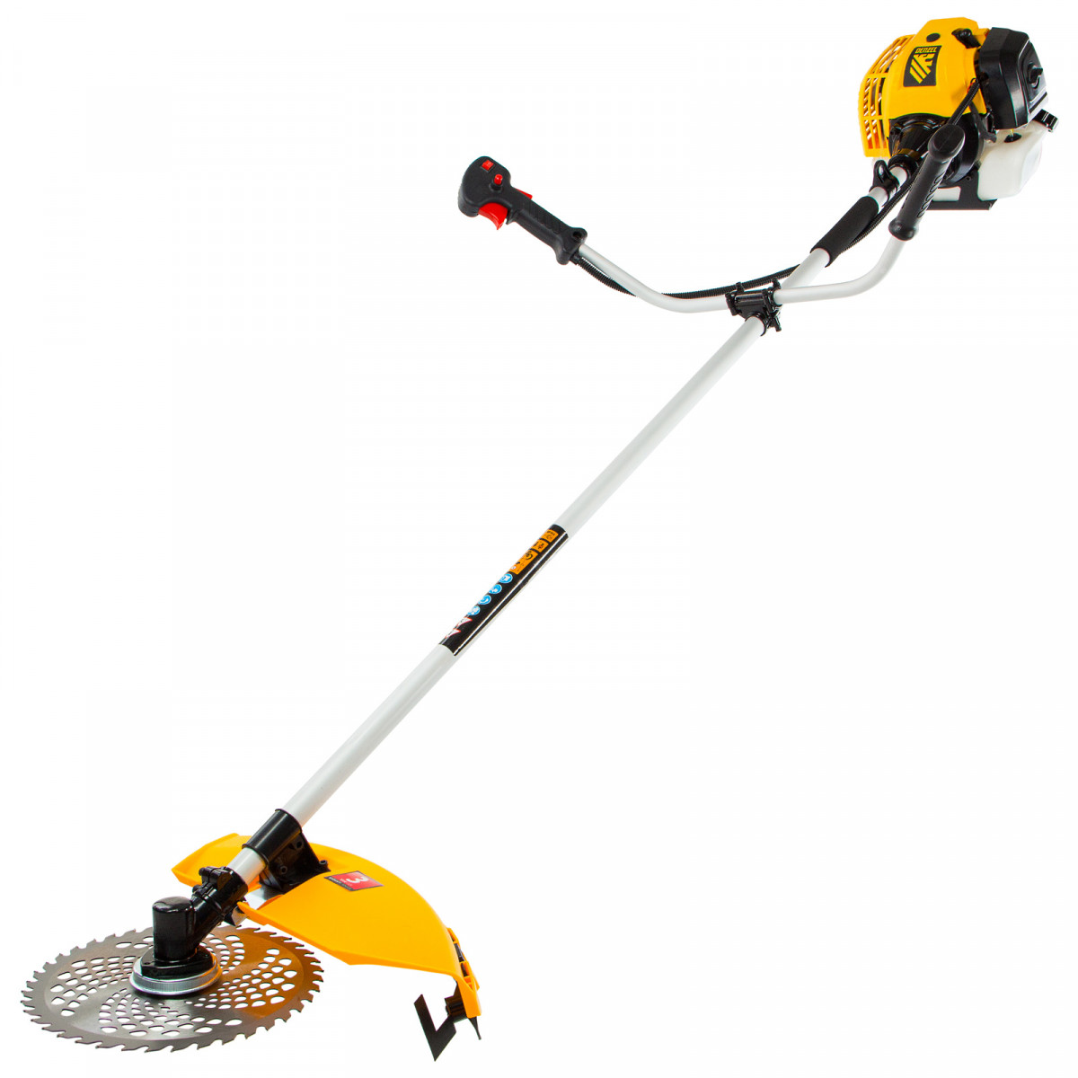 - Удобное управление — все кнопки собраны на правой рукоятке: выключатель зажигания, клавиша газа (увеличение оборотов двигателя), и кнопка «стоп» (блокировка клавиши газа от случайного нажатия).