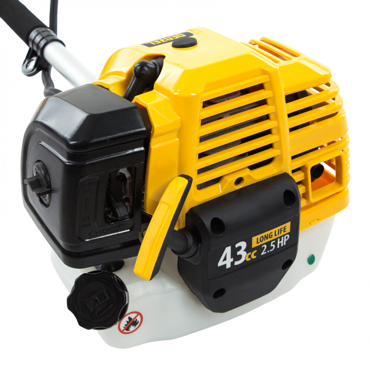 Триммер бензиновый DT 43, 43 см3, 2.5 л. с, неразъемная штанга, состоит из 2 частей Denzel